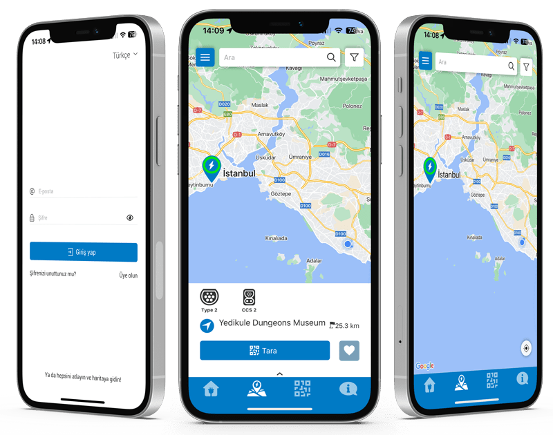 GSM Charge mobil uygulaması ile şarj noktalarını görebilir, şarj ödemenizi yapabilir ve geçmiş işlemlerinize ulaşabilirsiniz.